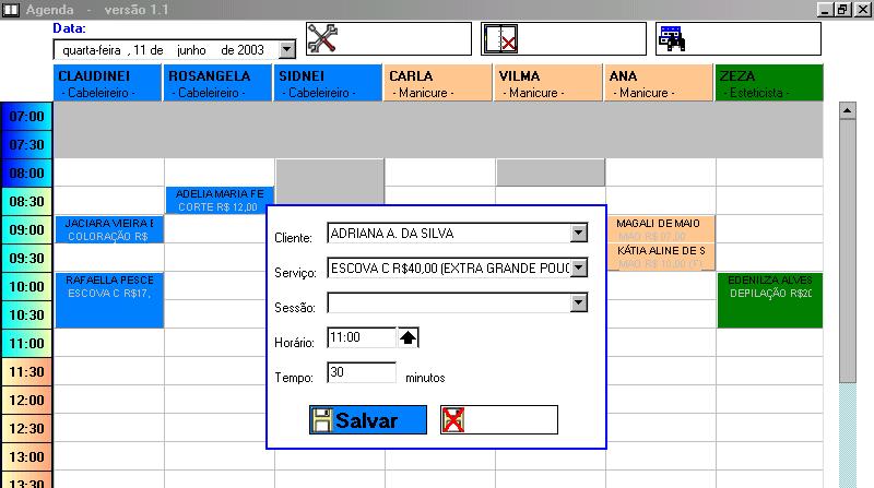 | agendamentos dos profissionais. Não permite edição, isto é, não